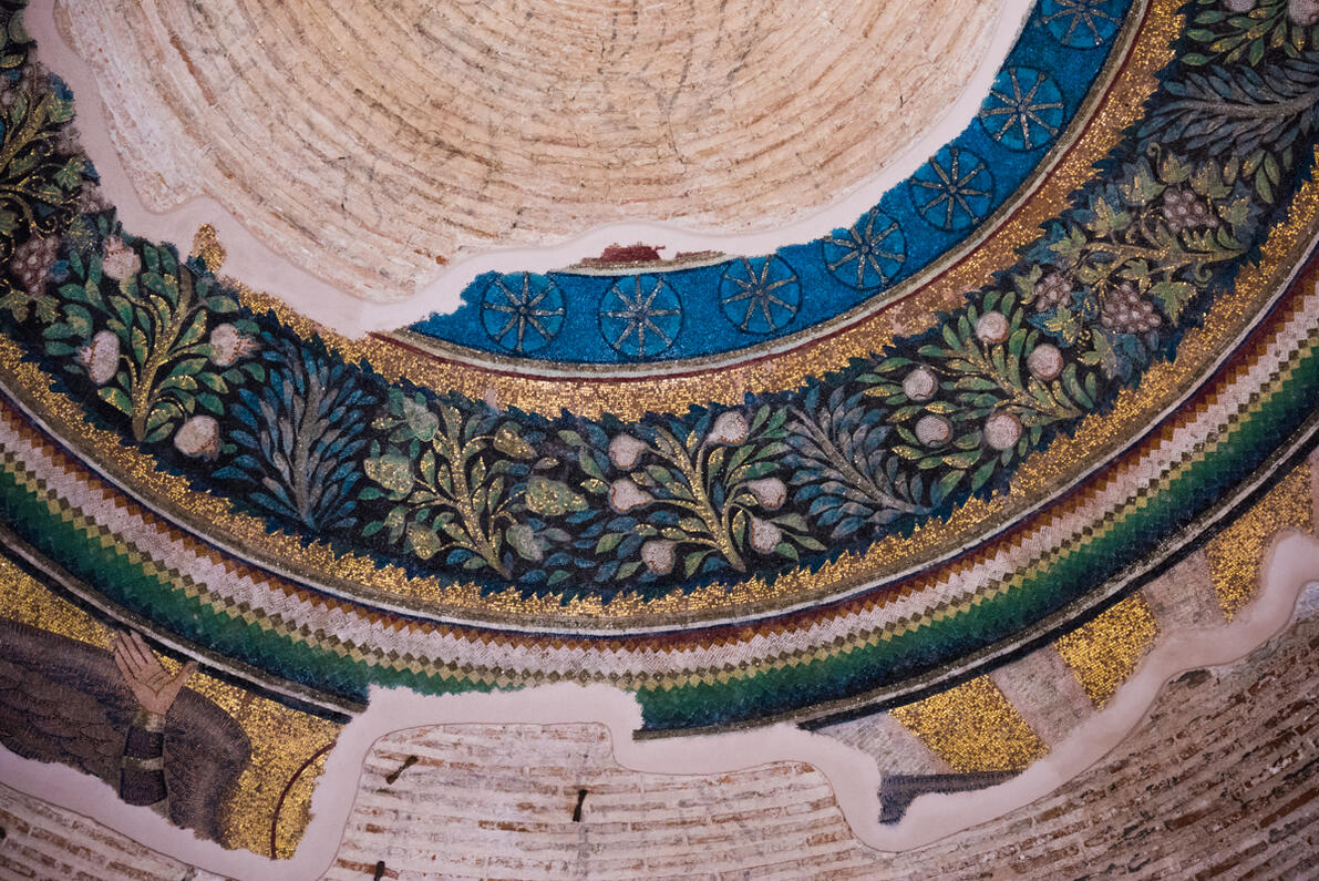 Of particular interest are the mosaics, of exceptional quality, which are considered the most beautiful of the early Christian years. From the decoration of the dome that still survives we understand that it depicts Christ’s Second Coming. Better preserved on the lower part are the saints, who are in front of an architectural setting. At the arches of the conches various decorative themes can be seen.