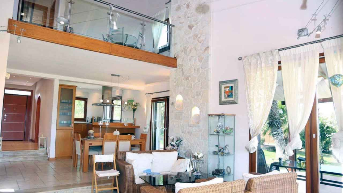 Αυτή η μοναδική βίλα αποτελείται από 400 τ.μ., 5μπάνια, 4 υπνοδωμάτια, συνολικά 10000τ.μ. μέγεθος οικοπέδου! Η ζωή σε ένα σπίτι όπως αυτό, η ιδιωτικότητα, η ασφάλεια και το όμορφο φυσικό περιβάλλον σας δίνουν μια μοναδική αίσθηση χαλάρωσης που δεν είναι δυνατόν να βρείτε σε κανένα σπίτι γύρω από την περιοχή της Σάνης. Ο κύριος κήπος στο πλάι του σπιτιού διαθέτει μεγάλη πισίνα με αίθριο ψυχαγωγίας και εγκαταστάσεις μπάνιου, γκαρνταρόμπα και πετρόκτιστο μπάρμπεκιου. Το σπίτι διαθέτει σύστημα κορυφαίας ποιότητας για ενδοδαπέδια θέρμανση δίνοντας ένα μοναδικό πλεονέκτημα να ζει στο σπίτι όλο το χρόνο. Είναι επίσης εξοπλισμένο με δορυφορική καλωδιακή τηλεόραση και Wi-Fi Internet.